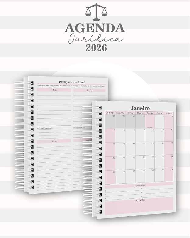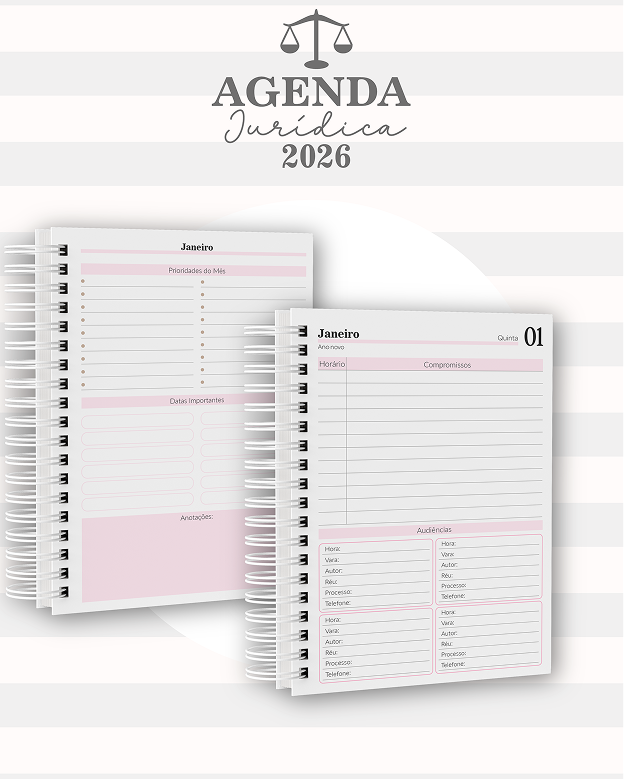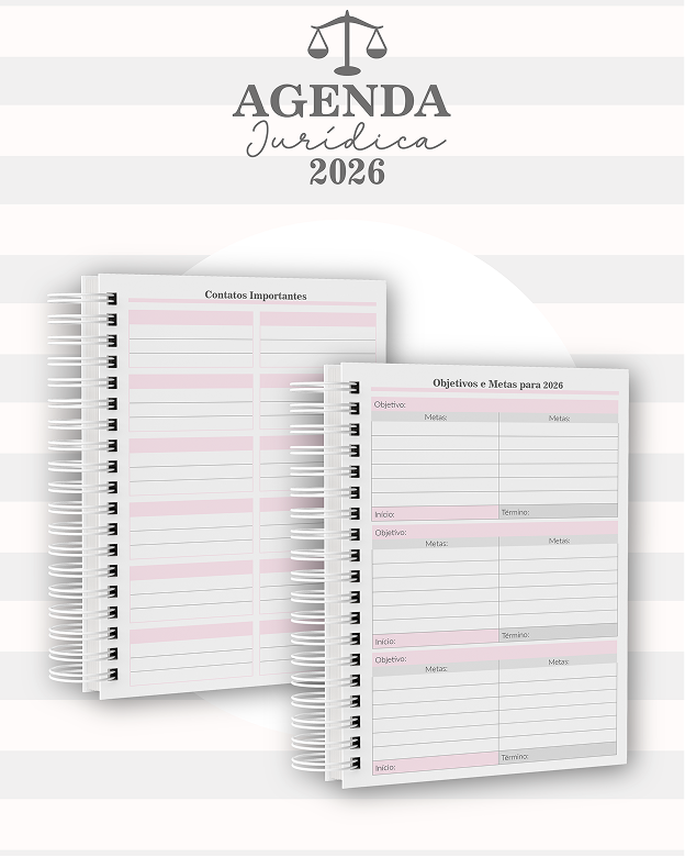 Seu 2026 mais organizado começa aqui: uma agenda jurídica bonita, prática e pensada para otimizar sua rotina de advocacia.